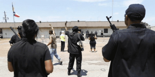 A group of New Black Panther Party members bearing arms marched on to a jail in Waller County, Texas, calling for death to “the pigs” and affirming “the revolution” has begun.In what I'm sure is an unrelated coincidence, a Texas sheriff was ambushed and shot to death in his car only a few days ago. A suspect was recently arrested.Among their chants, Breitbart reported: “The revolution is on,” “Off the pigs,” “Time to pick up the gun,” “No more pigs in my community,” “No more brothers in jail,” “No more sisters in jail,” “The pigs are going to get scared,” and finally, “The pigs are going to get dead.