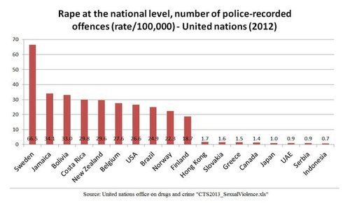 Most shocking is the metamorphosis of safe Sweden into the worst rape country on earth as of 2012. Mass immigration of young Muslim men will do that.