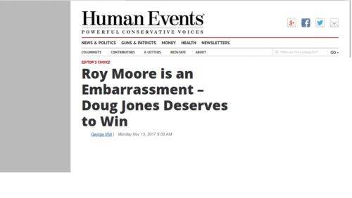 I happened to be rereading Kevin Lamb’s VDARE.com piece about his firing from Human Events and came across this hidden gem, apropos of Judge Roy Moore’s loss in Alabama 's special election for U.S. Senate: