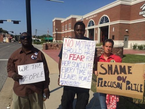 The original sign is below—it says ""No mother should have to fear for her son's life every time he leaves home," with the hashtags "#blacklivesmatter" and "#stayhuman.