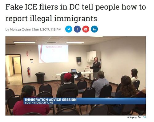 [Fake ICE Fliers In DC Tell People How To Report Illegal Immigrants, by Melissa Quinn, Washington Examiner, June 1, 2017]
