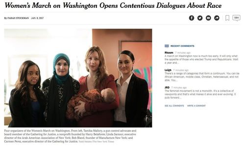 This brand of feminism — frequently referred to as “intersectionality” — asks white women to acknowledge that they have had it easier. It speaks candidly about the history of racism, even within the feminist movement itself. The organizers of the 1913 suffrage march on Washington asked black women to march at the back of the parade. …But the tone of the discussion, particularly online, can become so raw that some would-be marchers feel they are no longer welcome.