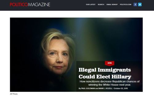 The story in POLITICO, Illegal Immigrants Could Elect Hillary | How noncitizens decrease Republican chances of winning the White House next year, By Paul Goldman and Mark J. Rozell, October 3, 2015, makes this clear. The Constitution apportions Electoral College votes to the states by population. Some quite large number of America's population is composed of illegal aliens. An even larger number are legal aliens, who also can't vote, but whose presence is counted for electoral votes.
