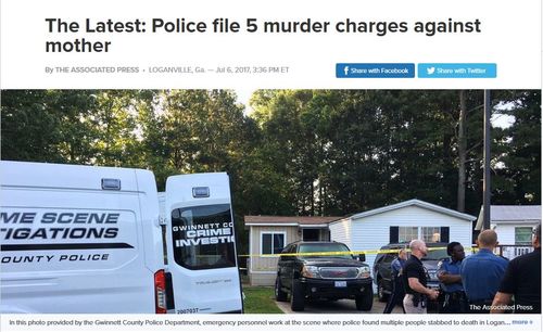 The Latest: Police file 5 murder charges against mother, ABC/AP News, July 6, 2017Here are some the details, with emphasis added.