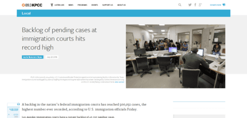 [Backlog Of Pending Cases At Immigration Courts Hits Record High, by Leslie Rojas, KPPC, July 22, 2016]