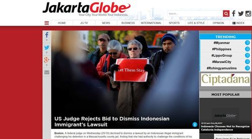 U.S. Judge Wrestles With Issue Of Indonesian Immigrants, by Scott Malone, Reuters, October 20, 2017