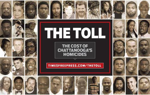 The toll in Chattanooga: The Cost Of Chattanooga's Homicides, Times Free Press, October 18, 2015Every time Satedra Smith pulls into her driveway, her mind goes back to one day a few months ago, when her sons wrestled in the front yard.