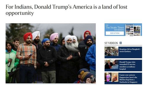 For Indians, Donald Trump’s America is a land of lost opportunity, Straits Times, April 24, 2017MUMBAI (NYTIMES) – Generations of Indians have admired the United States for almost everything. But many are infuriated and unnerved by what they see as a wave of racist violence under President Donald Trump, souring the United States’ allure.