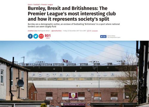 One EPL team, Burnley, currently in 7th place out of 20 teams in the first division, stands out. From the Independent:
