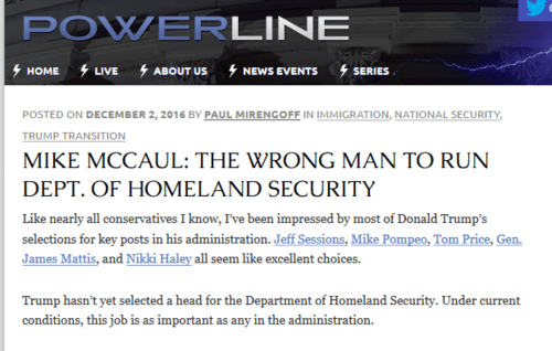 Last week, Paul Mirengoff took another risk in a post about Rep. Mike McCaul’s possible appointment to run the Department of Homeland Security.