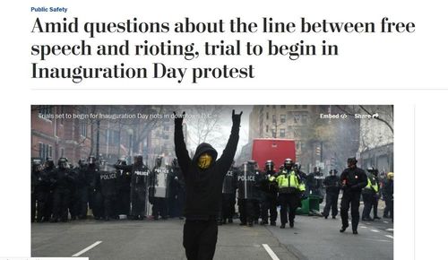 [Inauguration protesters were “playing a role in the violence and destruction,” prosecutor says, by Keith L. Alexander and Paul Duggan, Washington Post, November 20 2017]