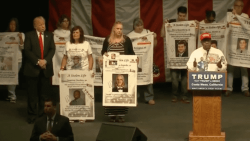 On Thursday in Costa Mesa, California, Trump invited several victim families on stage with him, including Jamiel Shaw, the father of a son killed by an illegal alien gangster in 2008.