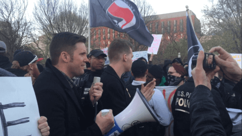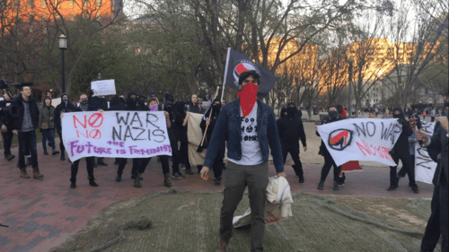 During the rally Spencer and the alt-right chanted “America first” “take a shower” “Fire Kushner” and “Build walls not wars”. The Antifa counterprotests shouted back “Fuck you Nazis” and “No Nazis, no KKK, no fascists USA.”