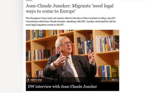 Jean-Claude Juncker: Migrants ‘need legal ways to come to Europe’“Jean-Claude Juncker” would be a good name for the supervillain in a Die Hard or Mission Impossible sequel, although the often seemingly tired and emotional Eurocrat is not really that formidable.The European Union must not remain silent in the face of slave markets in Libya, says EU Commission chief Jean-Claude Juncker. Speaking with DW, Juncker reiterated his call for more legal migration routes to the EU.