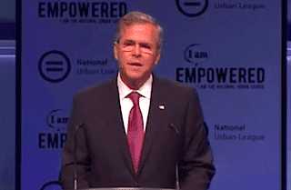 Bush was touting his record on education when he decided to quote something Obama said during his eulogy for the African-American churchgoers killed in Charleston, South Carolina last month.Bush was speaking to the National Urban League. The problem with this approach is Bush doesn't really have anything to offer the National Urban League, or, for that matter, the #BlackLivesMatter movement. Instead, the effect of this is that Bush essentially says America is built upon racism and continues to be plagued with "injustice," but he isn't really going to do anything about it. It demoralizes the mostly White base of the Republicans and does nothing to appeal to angry African-Americans.“When President Obama says that ‘for too long we’ve been blind to the way past injustices continue to shape the present,’ he is speaking the truth,” Bush said to applause from the audience in attendance. “But we should be just as candid about our failures in addressing injustices of the more recent origin,” he added in an attempt to move the focus from past to present.