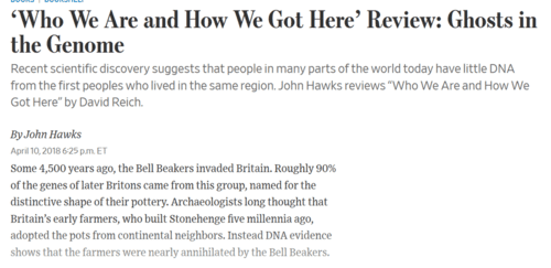 But these statistical ghost populations that we are only aware about due to patterns in the DNA of their descendants are both missing and are links.Reich’s industrial scale grave robbing and bone grinding operation doesn’t sit well with Hawks, who has pointed out on Twitter that in the future it probably won’t be necessary to grind up so many ancient bones to find out this info. Hawks’ implication is, apparently, that Reich’s hurry to be first is pushing him into methodologies that will be looked back on as, at best, heroic and more likely destructive, the way Schliemann’s urge to discover Troy in the 1850s through brute force excavation of an incredibly rich archaeological site seems a little much today.One of the most interesting chapters concerns India. There, Mr. Reich and his co-workers have documented a series of migrations, starting 4,000 years ago, that brought Indo-European languages and peoples into the subcontinent from the northwest. The science paints a scenario that seemingly parallels events described in the “Rig Veda,” the 3,500-year-old collection of Sanskrit hymns. …