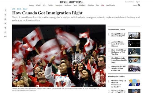 Canada is fascinating to me not least because I published my first book about Canadian politics (we'll republish it this winter since Canadian publishers are of course too Politically Correct to do so), and also for personal reasons. So I was especially irritated to see Jonathan Tepperman's (email him) gloating article How Canada Got Immigration Right in the September 16 Wall Street Journal (where else?). There's an excellent demolition of it by Ricardo Duchesne of the University of New Brunswick here.