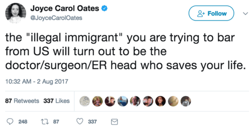 — Joyce Carol Oates (@JoyceCarolOates) August 2, 2017