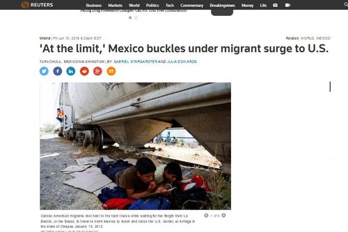 The latest Census Bureau data shows that the scale of new immigration is clearly enormous. The numbers raise profound questions about assimilation and the impact of immigration on the nation's education system, infrastructure, and labor market, as well as the size and density of the U.S. population. It is difficult to find a public policy that has a more profound impact across American society than the level of immigration. It is certainly appropriate that immigration should be at the center of the current presidential election.We're not talking about Mexicans, either. The biggest sending regions for immigrants overall in 2014-2015 were East and South Asia at 36 percent and Other Latin America — other than Mexico, that is — at 28 percent.What does "Other Latin America" actually encompass? Well, here's a story from Reuters, June 10th. Headline: 'At the limit,' Mexico buckles under migrant surge to U.S..