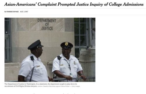 [The] statement described the investigation as an administrative referral about a complaint filed by 64 Asian-American coalitions in May 2015 and that “alleges racial discrimination against Asian-Americans in a university’s admission policy and practices.” That description dovetails with a dispute at Harvard University that led to a still-pending lawsuit filed on behalf of such students. The Justice Department, to date, has not intervened in that litigation or filed a friend-of-the-court brief.In other words, the spokesman explicitly denied the what the Times first implied in its report: that the investigation is meant to help whites.