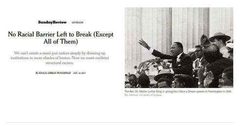 No Racial Barrier Left to Break (Except All of Them)It might offer a little more perspective to mention that Professor Muhammad’s great-grandfather was the Honorable Elijah Muhammad, supreme leader of the Nation of Islam (a.k.a., Black Muslims):We can’t create a more just nation simply by dressing up institutions in more shades of brown. Now we must confront structural racism.