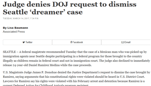 [Judge Denies DOJ Request To Dismiss Seattle ‘Dreamer’ Case, by Lisa Baumann, Spokesman Review, March 14, 2017]