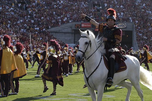 Instead, the brief performance before USC kicked off its season against Georgia Tech turned into one of college football’s iconic traditions. A succession of white horses named Traveler have followed — Traveler IX debuts this fall — trotting out of the tunnel as “Conquest” plays and the costumed Trojan warrior atop the horse waves a sword. But during a rally earlier this week to show solidarity in the aftermath of the violence in Charlottesville, Va., a USC campus group linked the name to Confederate Gen. Robert E. Lee, whose favorite horse was Traveller.