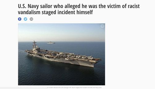 A sailor who claimed someone vandalized his living quarters in a racist attack aboard the USS George H.W. Bush (CVN 77) staged the incident himself, the Navy said Friday.No one could have predicted.The sailor — whom the Navy did not name because he was not charged with a crime — shared photos of the alleged vandalism in a Facebook post that went viral.