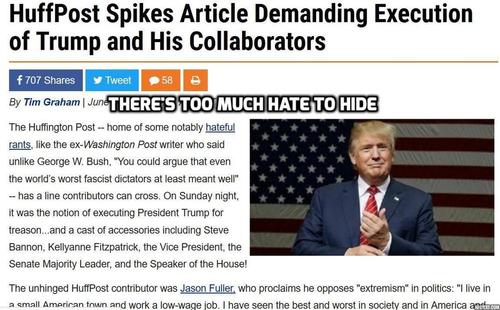 First example: HuffPo has erased an article calling for the execution of Trump and his political team for treason.