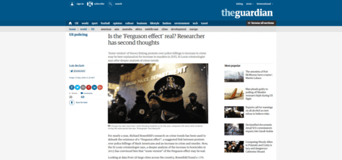 Is the ‘Ferguson effect’ real? Researcher has second thoughtsProbably at 4:59 PM on July 3rd, kind of like how LBJ released the Coleman Report in 1966.‘Some version’ of theory linking protests over police killings to increase in crime may be best explanation for increase in murders in 2015, St Louis criminologist says after deeper analysis of crime trends