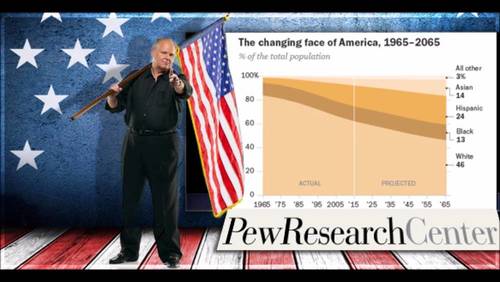 Bye-Bye, Distinct American Culture! The Left’s Massive Demographic Shift, RushLimbaugh.com, April 01, 2016RUSH: Okay. The Pew Research Center for the People & the Press put out this massive research product recently: “10 Demographic Trends That Are Shaping the US and the World,” and, if you go into reading these with any kind of a pessimistic attitude, you would be totally within your logical bounds to conclude that the country’s done, as you’ve known it.