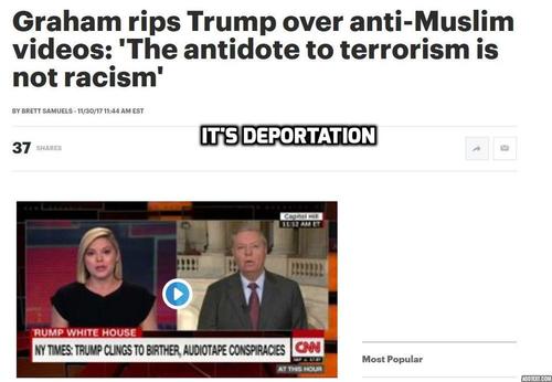 So, Graham is right. The answer to terrorism isn’t racism or religious intolerance. The answer is deportation. No Muslims. No terrorism.