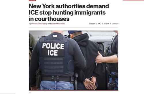 [New York Authorities Demand ICE Stop Hunting Immigrants In Courthouses, By Priscilla DeGregory and Linda Massarella, New York Post, August 3, 2017]