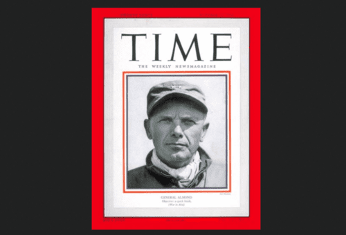Almond was for a time highly regarded by George Marshall, also a VMI graduate, who was Army Chief of Staff during World War II. This regard accounted in part for Almond’s promotion to major general ahead of most of his peers and subsequent command of the 92nd Infantry Division, made of almost exclusively African-American soldiers, a position he held from its formation in October 1942 until August 1945. He led the division in combat in the Italian campaign of 1944-1945.Almond explained the problem with black troops this way:Although George Marshall picked Almond for this assignment because Marshall believed Almond would excel at this difficult assignment, the division performed poorly in combat with Almond blaming the division’s poor performance on its largely African-American troops, echoing the widespread prejudice in the segregated Army that blacks made poor soldiers — and went on to advise the Army against ever again using African-Americans as combat troops. Almond told confidants that the division's poor combat record had cheated him of higher command.