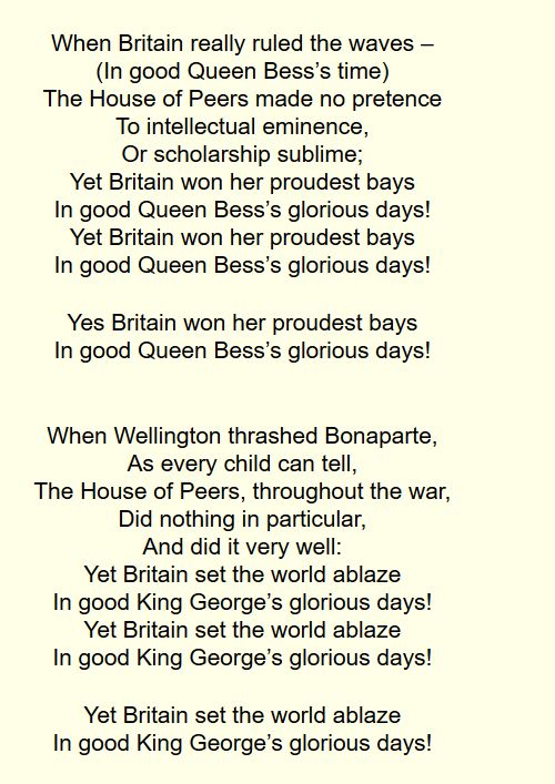 About twenty years ago, when Tony Blair was in the midst of "reforming" - ie, wrecking - the House of Lords, I suggested in The Sunday Telegraph that he replace it with the House of Gays, since, as a small, unrepresentative elite exercising power and influence out of all proportion to their actual numbers, gays were now the contemporary equivalent of the old peerage. It wasn't the greatest jest, but Page Six in The New York Post and a few other papers picked up the quip and reported on it. And, running into me a few weeks later, my National Post colleague David Frum asked if I'd been a bit nervous about its edginess. I giggled, and said that originally I'd written that Mr Blair should replace the House of Peers with the House of Queers, but I'd amended it because these days only G&S fans recognize the formulation "House of Peers".That's from Gilbert and Sullivan's Iolanthe: