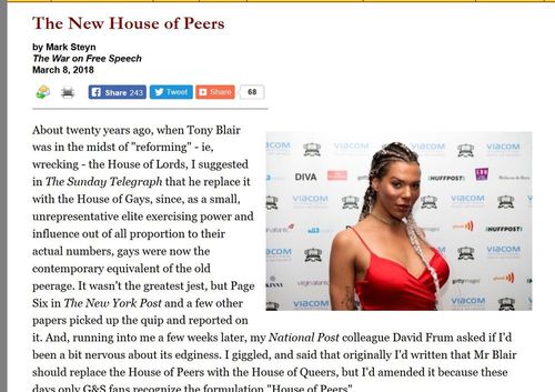 Thick-headed but mostly harmless Peers are a lot less dangerous than SJWs, but as Steyn points out, we may be expected to find electoral room for a "House of Gays" in real life.