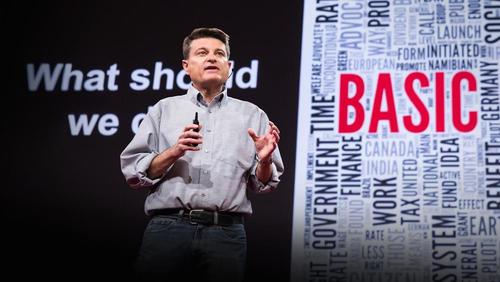 11:16 Now, basic income is becoming a very important idea. It’s getting a lot of traction and attention, there are a lot of important pilot projects and experiments going on throughout the world. My own view is that a basic income is not a panacea; it’s not necessarily a plug-and-play solution, but rather, it’s a place to start. It’s an idea that we can build on and refine. For example, one thing that I have written quite a lot about is the possibility of incorporating explicit incentives into a basic income. To illustrate that, imagine that you are a struggling high school student. Imagine that you are at risk of dropping out of school. And yet, suppose you know that at some point in the future, no matter what, you’re going to get the same basic income as everyone else. Now, to my mind, that creates a very perverse incentive for you to simply give up and drop out of school.