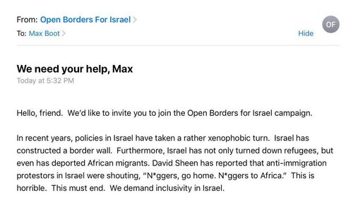 Another, especially Bootian reason for Open Borders for Israel would be more cannon fodder. As Boot proposed for the U.S. in 2005 as a way to man all the wars he had helped bring about and all the future wars he was planning to instigate: