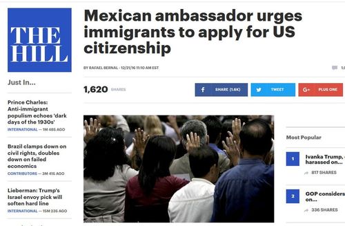 [Mexican ambassador urges immigrants to apply for US citizenship, by Rafael Bernal, The Hill, December 21, 2016]