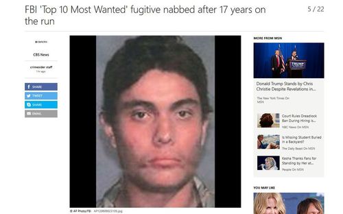 He’s been the subject of a worldwide manhunt since 1999, when he was charged federally with unlawful flight to avoid prosecution. [More]