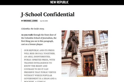 Journalist Michael Lewis visited the Columbia School of Journalism in 1993 and wrote up the experience for the New Republic. That was during a period of higher than usual crime in New York—i.e. pre-Giuliani—and Columbia is located in Harlem.