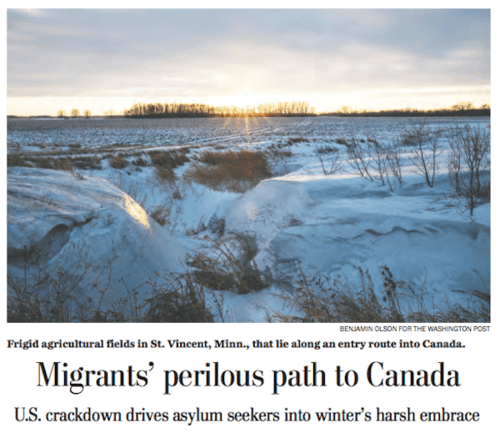 The Washington Post front-paged a chilly photo on Saturday to show the frozen wastes of Canada that fleeing aliens must face — brr!