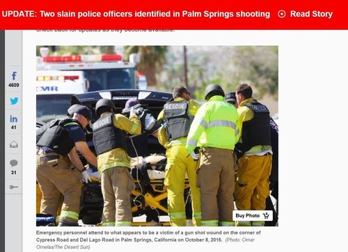 Two officers dead, one injured in Palm Springs shooting; manhunt ongoingThere are always many crazy people in this world. But when the authorities figures of government, politics, media, NGOs, and academia encourage angry young men to feel even more unjustly victimized by cops than they would anyway, bad things can ensue.Brett Kelman, Gustavo Solis and Jill Castellano