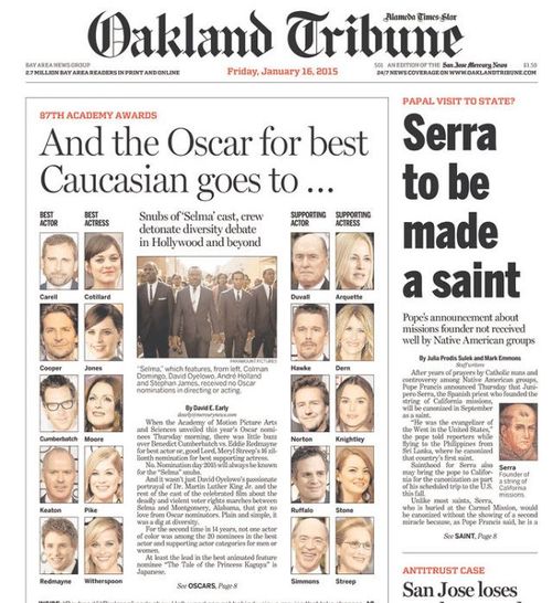 Friday’s Oakland Times front page carried this headline over a tendentious news piece: “And the Oscar for best Caucasian goes to ...”