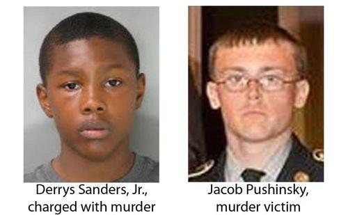 Derrys Sanders is black and Jacob Pushinsky was white. From reading old news reports, one finds that Derrys had "mental health issues" and Jacob Pushinsky was a model student.