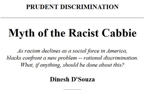 I like that phrase about "more cab drivers than left turns", but it's the kind of thing that we at VDARE.com can say, and NRO can't, or doesn't want to. But apparently not in 1995, when D'Souza was writing this, and Peter Brimelow was still employed there.