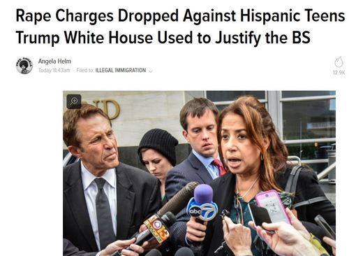 Rape Charges Dropped Against Hispanic Teens Trump White House Used to Justify the BS, by Angela Helm, May 6, 2017.In what surely has to be a disappointment for a White House that used this case to dubious and distasteful political advantage, prosecutors have dropped charges against two Hispanic teens accused of raping a girl in a Maryland high school bathroom.