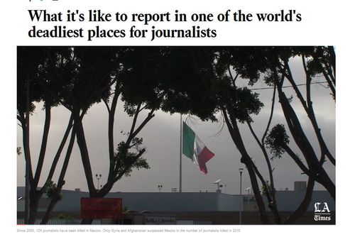 What it’s like to report in one of the world’s deadliest places for journalists, Los Angeles Times, May 2, 2017Since 2000, 124 journalists have been killed in Mexico. Only Syria and Afghanistan surpassed Mexico in the number of journalists killed in 2016.