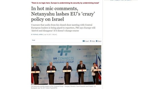 “I think Europe has to decide whether it wants to live and thrive or it wants to shrivel and disappear,” Netanyahu told the leaders of the eastern EU states behind closed doors in Budapest.