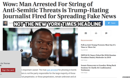 I did an article that compared it to the "Black Church Burnings" panic—when the churches were almost all burned by blacks. The point is that anonymous threats against Jewish Community Centers were blamed on white Trump supporters, in spite of the fact that these were, you know, anonymous.